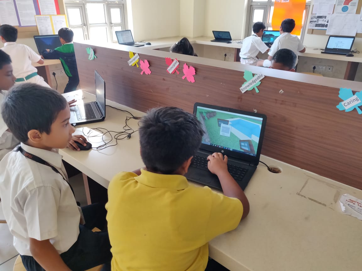 Technology is the center of harbinger of change that allows learners to communicate, collaborate and create.The Edge programme offered to enthusiastic learners from Grades 3-5 allows them to take their learning to the next level. This program has initiated students to gamification through the use of Minecraft and KUDO, programming through Scratch and Hour of code, while enhancing creativity with the use of Paint 3D and netiquette using Google Interland. At DPSI, we inspire minds to connect and innovate!